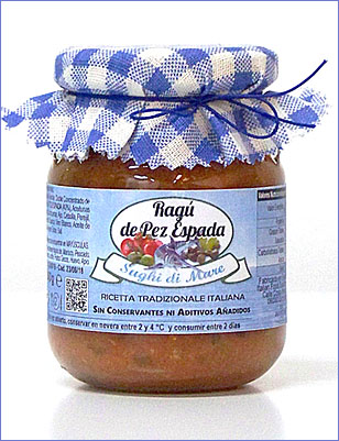 Tomato Pulp, Tomato Paste, SWORDFISH, Green Olives, Capers, Garlic, Onion, Parsley, White Pepper White Wine, Extra Virgin Olive Oil, Iodized Salt.