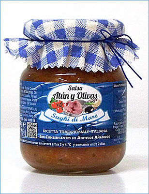 Tomato Pulp, Tomato Paste, TUNA, Green Olives, Onion, Garlic, Parsley, White Pepper Red Wine, Extra Virgin Olive Oil, Iodized Salt.