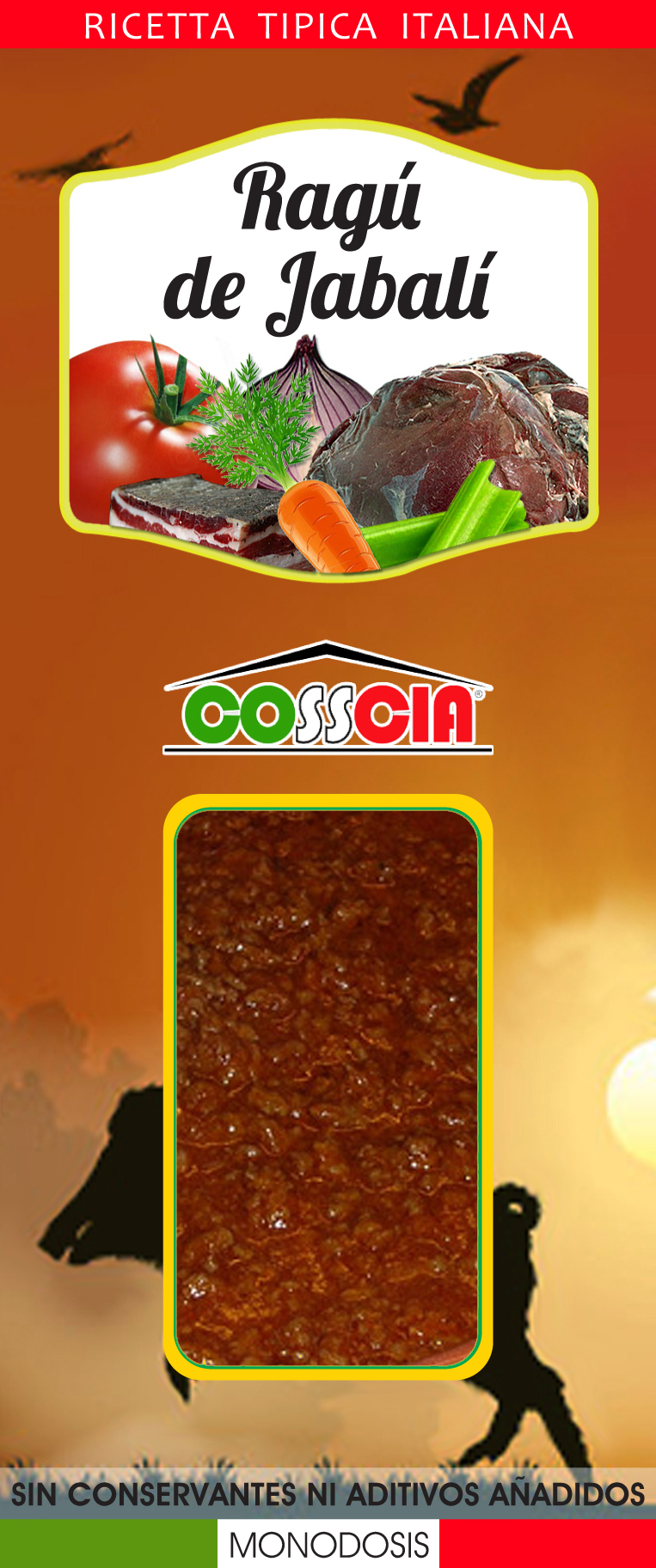 Pulpa de Tomate, Doble Concentrado de Tomate, Carne de Jabalí, Panceta, Zanahoria, APIO, Cebolla, Laurel, Vino Tinto, Aceite de Oliva Virgen Extra, Sal Yodada.